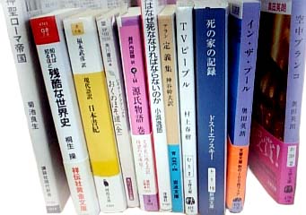 あと相方とテンションあがってサイト作ってたんですがつくれませんでした。 本当に、つくれませんでした。 つかれました。 私はあまり本を読みません。 そして私は整理することが苦手です。 何がいいたいって、パソコンの周りを整理しようと思ったらこれだけの本が片付けられずに放置されてたっていう事で…… 片付けろよ… 読み終わったもの、読みかけのもの、読んでないものとごちゃごちゃです。 私は片付けられない子です。(痛)片付けるのが下手なのと、計画性が0なので片付けるとものをどこにやったのか余計にわからなくなってしまいます。どこになにをおくか決めておくべきだよね… それにしても買った本に全く一貫性が見られません! 完全に読み終わったものは本棚に仕舞ってしまうんですが、最近買って読んだ本、読みかけの本は基本的にそのへんにほったらかしになります。 これを見てただ一つ自分でわかったのは奥の細道だけは読みすぎだという事です。 源氏は何を思って買ったのかよくわかりません。あと日本書紀を読んでしまいたい、です…!!ひゃっほう神道! でも私は本を読むのがはやいほうではないので、(早い!ってびっくりされることもあるんだけど、本をよく読む人よりずっとおそい)時間が沢山経ってしまうのがイヤなのです… あと根気がないんだろうね…文章得意じゃないのかもしれない… でも本を読むことって本当に大切だと思うんです。だけどほんと、あんまり読まないなぁ。本は絶対読んだほうがいいよ。沢山読む人を本当に尊敬する。