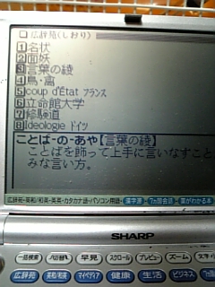 ああああうぁぁあ私いい加減にしろ!まじでいい加減にしろ!何をいい加減にとか全てを!! あばばば寒い…蘭々さんは寒くてもながずぼんはきません…はけよ… 私服でズボンなんてもう1、2年くらいはいてないんじゃないか。 足短いんでねーあばばばばば小学生の時の体操服の短パンをスパッツがわりにはいてるよ!何かもうつらいよ! なんかお母さんが制服のスカートの下に履く短いスパッツかってきてくれたんだけど何だろうあれあったかいの? せっかくだから履いてるんだけど。 よく先生にパンツ見えるからやめなさいとスカート短いのを注意されるわけですが見えないよーだあばばばばば 化粧してないのにしてるといわれますどうもらんらんです。日ごろの行いが悪いとそういうところが不便です。 一回怒ったけどね!アイラインなんてひいてないよ授業中寝るんだからそんなことしたら大変な目に…!(よく寝起きに目を擦ります) 文章意味わからーん!(バリーン)そして私いいかげんにしろ! あんまりはらたってガムかみまくったら今すごく気持ち悪いですあばばばば… 私は辞書大好き人間です。 辞書があれば暫く遊んでいられます。 で、趣味が凄くわかりやすい履歴。 国萌えと山萌えばっか!(笑) 百科事典はこれです。時期によって飛鳥時代だったり薬だの麻薬だのアルカロイドだのばっかりだったりもします。 百科事典は世界史で埋まりやすい…広辞苑はたまに哲学用語ばっかりだったりもする。 1番笑えるのは英語(笑) 広辞苑。言葉の綾とか調べてる所をみるとレトリックについて考えてた時だろうに前後に調べてる事が全然関係なかった(笑) 修辞法と修験道を間違えて入力…んなわけないか。 知ってる事も何度も繰り返して引いたり、意味なく思いついた言葉を引くのが好きです。 あと漢字辞典は超たのしい!熟語が超たのしい! あったらいいのに、ってのも引く。残念ながらカカナルという言葉はありませんでした。 情報提供:相方 筆圧感知かきやすすぎワロタ\(^o^)/ たのしかったのでペン入れしなおしてみる。 どう考えても時間の無駄遣いですどうもありがとうございました。 あと相方にテメーの英子絶対ツンデレじゃないっていわれたので表情をけわしく…しようと思ったけどしきれなかった。