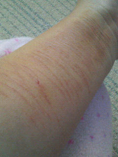 せっかく治ってきたのに!みたいなね。一日ガマンしてたしね。うえのほうは結構治ってきたんですよー血管の真上から傷全体の四分の三くらいが瘡蓋が大分はがれてきてOk!なかんじに。残りはちょっとハンパに閉鎖療法やったら何か内出血みたいになりました。